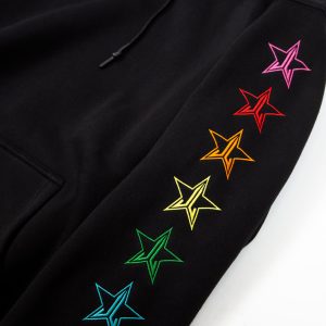 This UNISEX ‘Rainbow Hoodie’ is a completely custom. premium garment. The Jeffree Star Cosmetics logo is fully embroidered down both of the sleeves in rainbow colors for the finishing touch.?